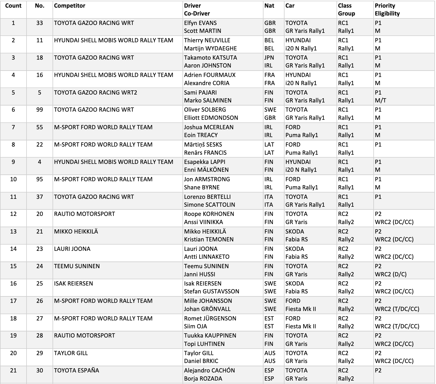 Já está disponível a Lista de Inscritos da edição 2026 do Rali da Suécia, segunda prova do Campeonato do Mundo de Ralis, que vai para a estrada de 12 a 15 de fevereiro.