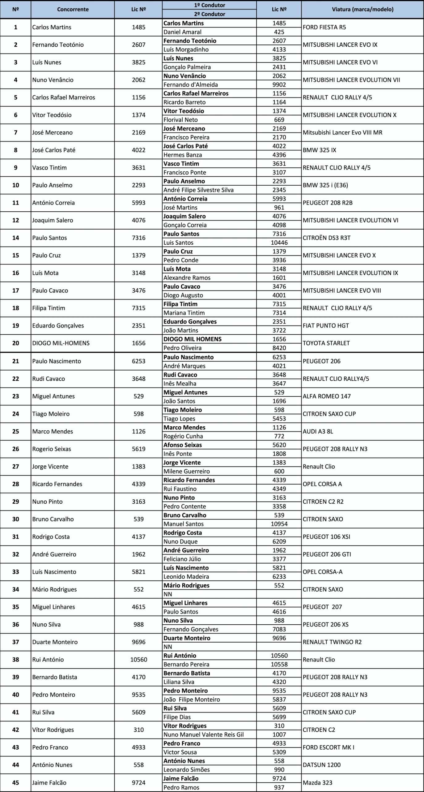 Home/Regional/Inscritos Rally de Tavira – Encivil 2025 RegionalSul Inscritos Rally de Tavira – Encivil 2025 CAMPEONATO SUL DE RALIS Paulo Homem Send an email Novembro 26, 2025 2.410 Menos de 1 Minuto Facebook X WhatsApp Partilhar Via Email TagsCAMPEONATO SUL DE RALIS RALLY DE TAVIRA ENCIVIL Paulo Homem Send an email Novembro 26, 2025 2.410 Menos de 1 Minuto Facebook X WhatsApp Partilhar Via Email Partilhar Facebook X WhatsApp Partilhar Via Email