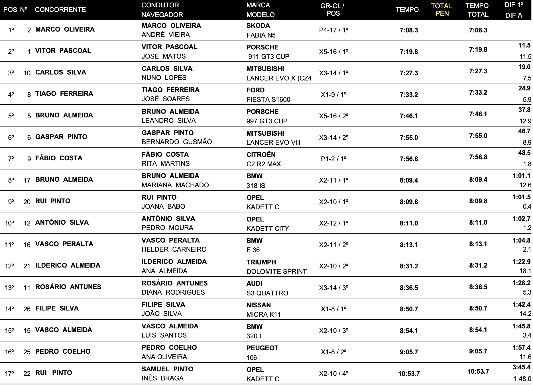 Na estreia do seu novo Skoda, Marco Oliveira demorou a percorrer todas as especiais do rali em 7m08,3s, oq eu representou ganhar quatro das cinco especiais de classificação realizadas.