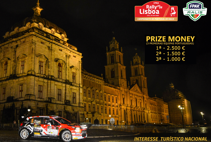 O Rally de Lisboa, a 3ª prova do Campeonato de Portugal de Ralis de 2026 vai atribuir um Prize Money no montante de 5.000 € aos três concorrentes portugueses melhor classificados.